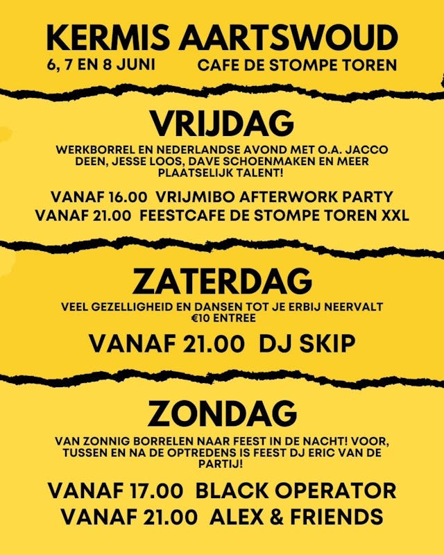 Drie dagen vol muziek, gezelligheid en dorpsfeest zoals je het gewend bent โ binnen รฉn buiten!