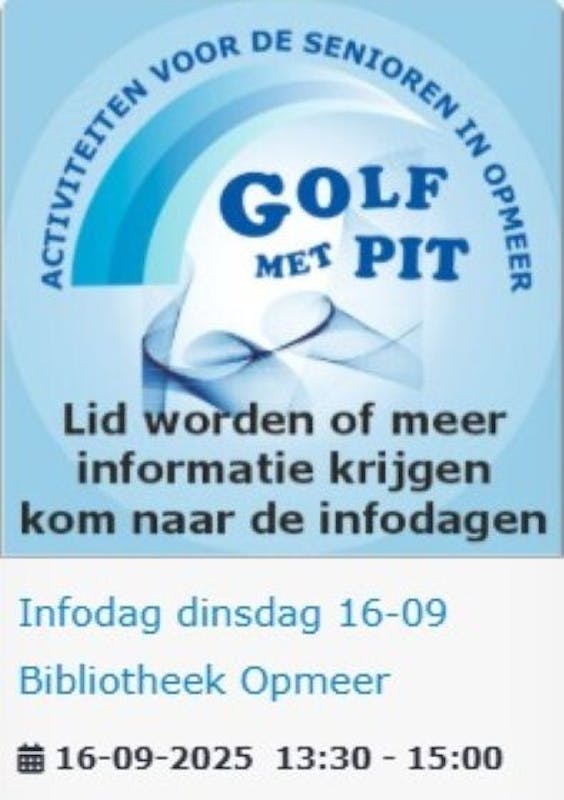 Golf met Pit heeft op deze middag een  inloop spreekuur.