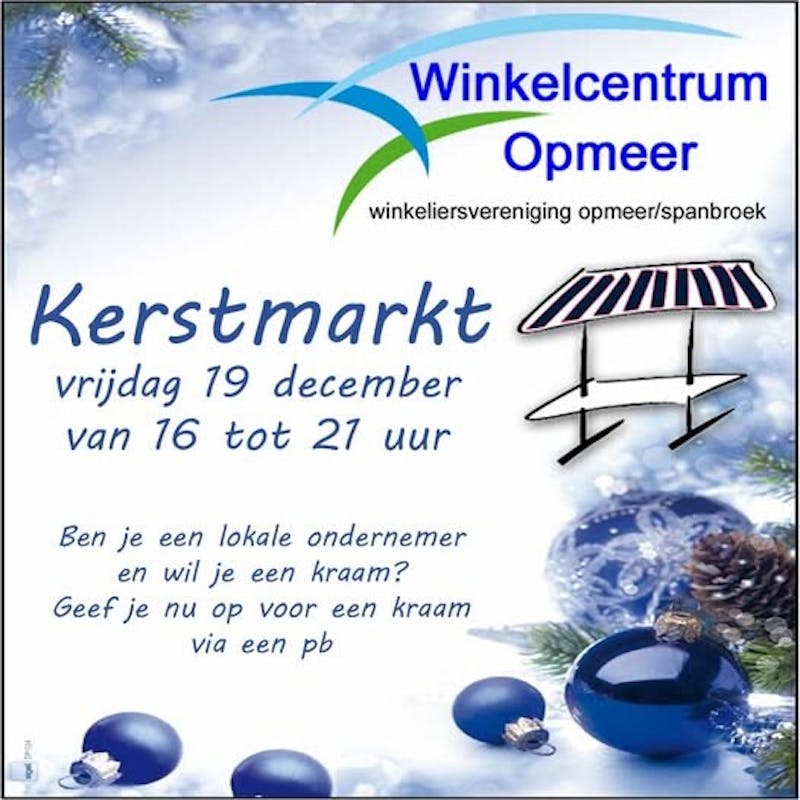 Op vrijdag 19 december van 16.00-19.00 uur vindt de eerste kerstmarkt plaats in het Winkelcentrum Spanbroek - Opmeer.