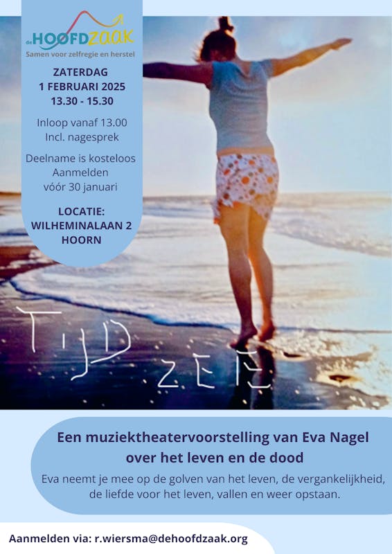 Op zaterdag 1 februari geeft Eva Nagel haar muziektheatervoorstelling ‘Tijd zee’ bij De Hoofdzaak in Hoorn.