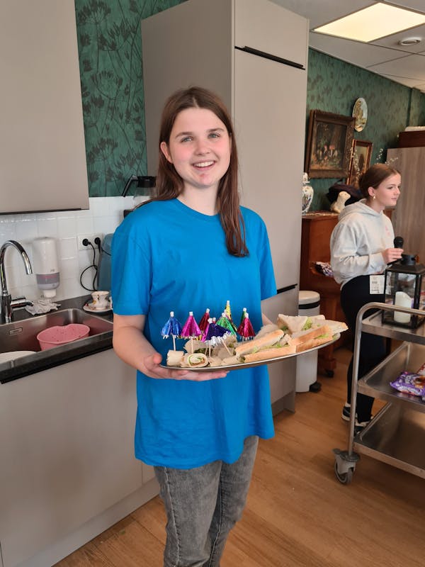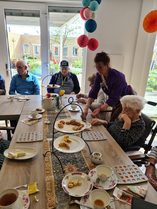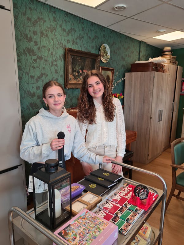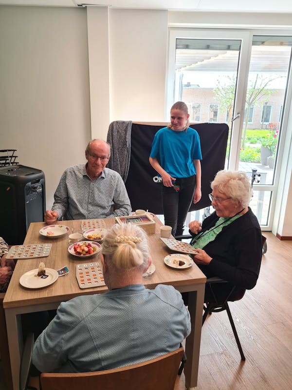 Een heerlijke high tea en een gezellige Bingo met leuke prijsjes voor de bewoners van de Pastoor Meriusflat en Weidehof in Spanbroek, georganiseerd door onze eigen jongeren uit Opmeer die meedoen met de Award. Wat een gezellige sfeer en blije gezichten, zag ik. Mevrouw Rood, 'de jongeren doen mij denken aan mijn eigen kleinkinderen en daar word ik heel blij van. Ze zijn ook zo lief.' Paul ging spontaan applaudiseren om te bedanken. 'Een feestje is het hier en zo gezellig'. Na afloop ging iedereen voldaan en met een prijsje naar zijn eigen appartement. Noortje van 13 jaar vertelt, 'mijn oma is 92 jaar en houdt erg van bingo, ik vind het leuk om de bewoners blij te maken met het spelen van Bingo en leuke prijsjes uit te delen. En ik heb zelf ook een gezellige middag, samen met de andere meiden van de Award groep. We gaan de komende tijd nog veel meer activiteiten doen. Ondertussen gaat Nikki langs met lekkere sandwiches en wraps. Op tafel staan etagères met zoete hapjes. Rosita, activiteitenbegeleider bij Weidehof is erg enthousiast. 'Dit is de eerste keer dat we deze samenwerking met de Award hebben, maar het is erg geslaagd. De meiden hebben het echt goed voorbereid en zijn lekker bezig. Het contact tussen de bewoners en de jongeren gaat super goed en heel natuurlijk. Dat is mooi om te zien. Ze krijgen van mij een groot compliment en zijn volgend jaar weer welkom.' 😊