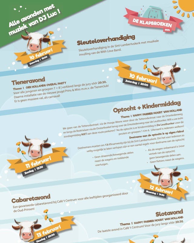 Zondagmiddag, 13.30 uur: Carnavalsoptocht (vertrek vanaf de Lambertuskerk) met aansluitend Kindermiddag in café 't Centrum