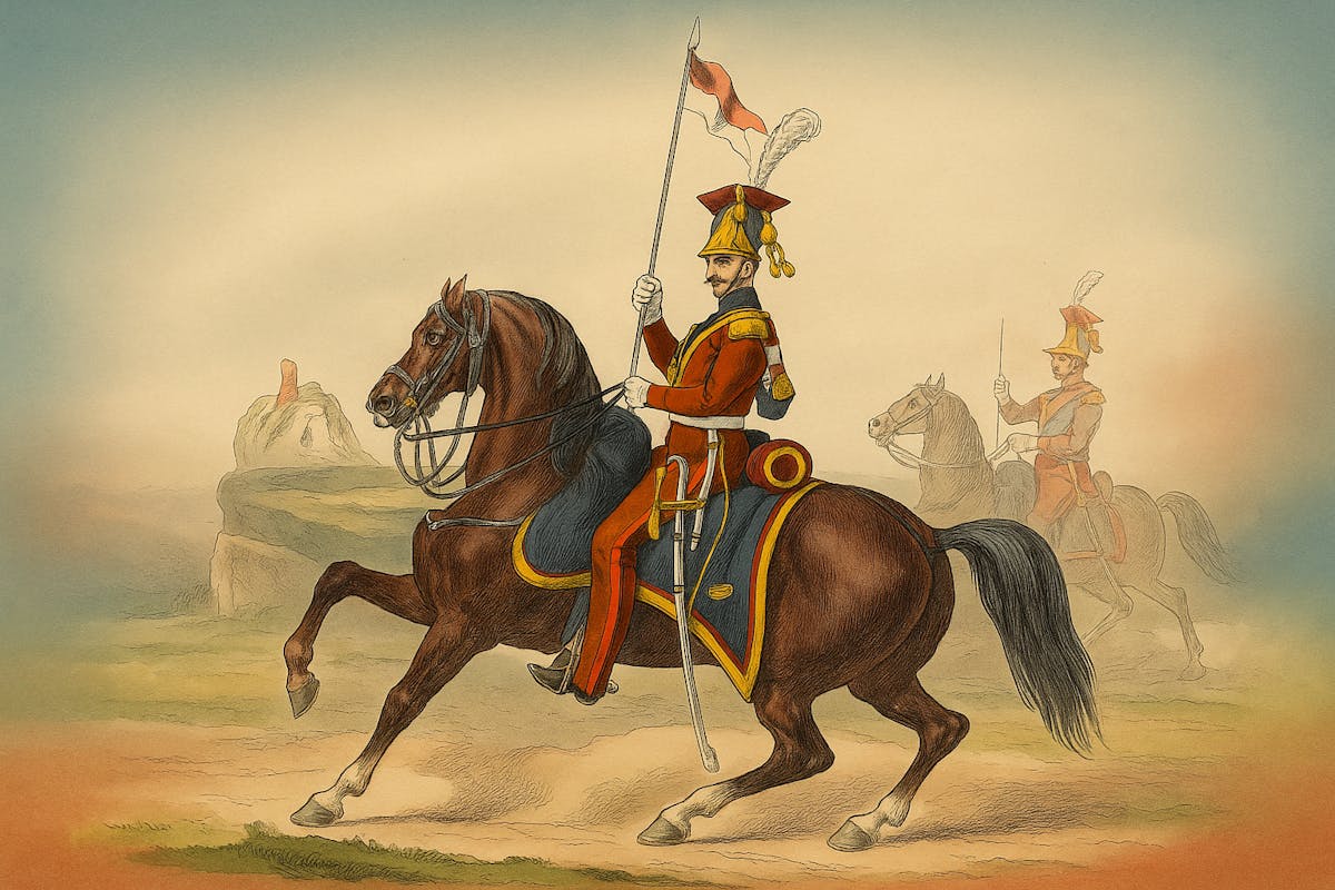 De foto toont een lansier van de cavalerie van Napoleon (publiek domein - bron: Wikimedia).