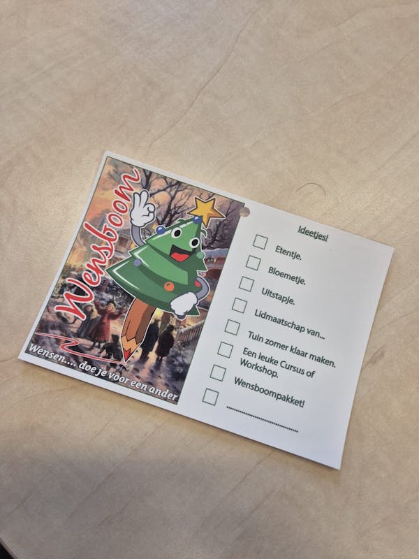 Een wens kan gaan om een etentje, een bloemetje, een gezellig uitstapje, een lidmaatschap, een leuke cursus of workshop, een wensboompakket of een andere verrassing naar eigen invulling. Alles wat iemand laat voelen: ik word gezien en gewaardeerd. 💝