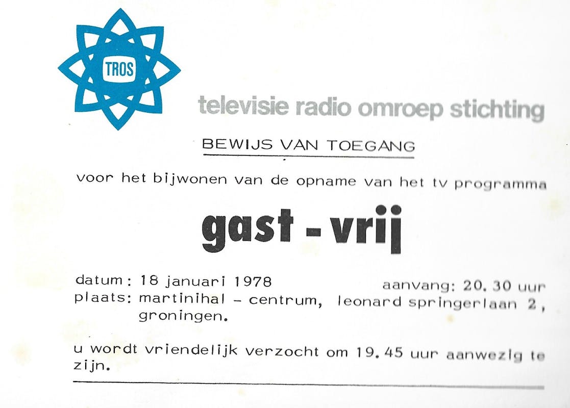 Het verhaal kreeg een vervolg toen het bestuur een paar weken later werd gebeld of ERATO wilde meewerken aan een televisieprogramma rond Rob. De TROS zond in die periode het programma ‘Gast-Vrij’ uit, waarin één artiest centraal stond, gasten ontving en fans vragen mochten stellen.