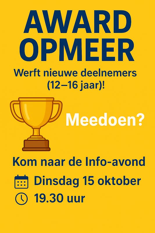 Op dinsdag 15 oktober om 19.30 uur houdt de Award Opmeer een inloopavond voor nieuwe deelnemers