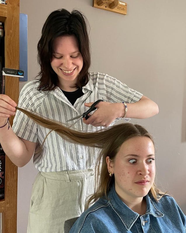 Ik vertel Rory en Fiene dat ik graag nog een foto wil maken, die de lezer van Opmeerleeft triggert om dit bericht te lezen. Gelijk werd er een schaar gepakt en met gekkigheid (bijna) een hap uit Fienes haar geknipt.