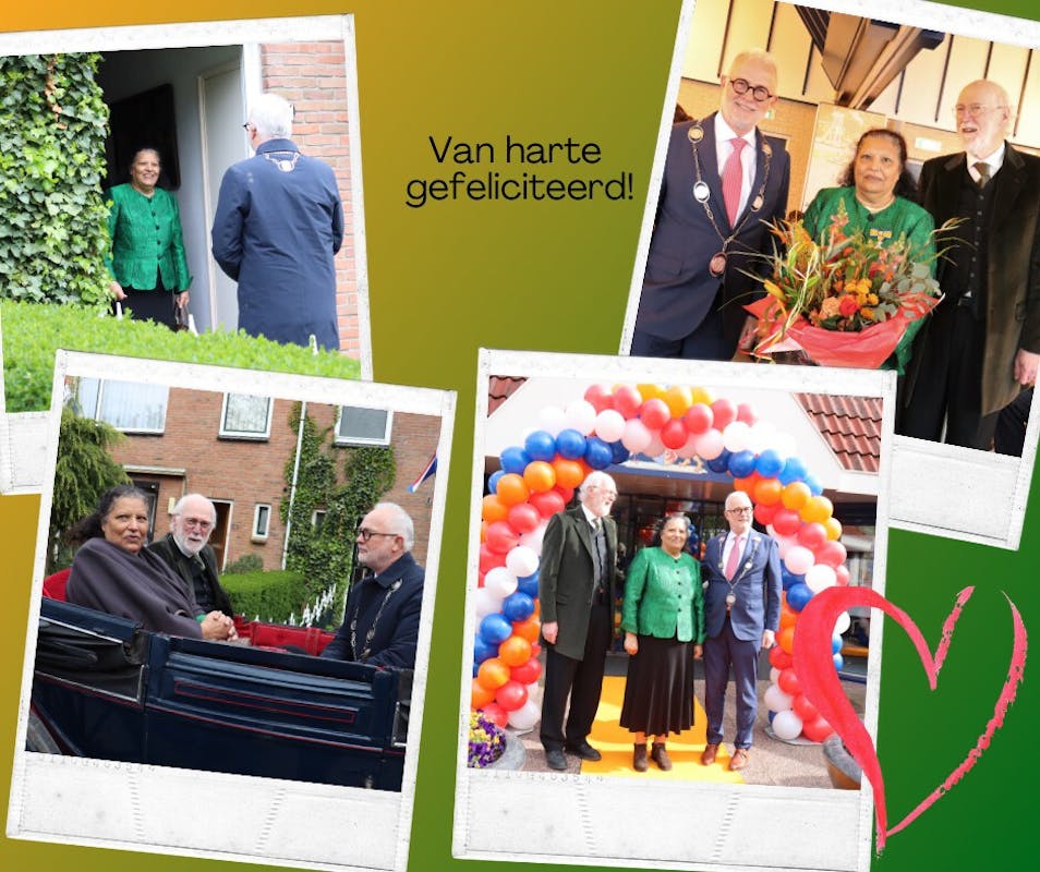 Burgemeester Gerard van den Hengel verraste mevrouw Feldberg vandaag door haar met een prachtige paardenkoets thuis op te halen. Zij mocht instappen en samen reden zij naar het gemeentehuis. Bij aankomst werd ze verwelkomd door een haag van familie, vrienden en alle lieve mensen die zij geholpen heeft goed te aarden in Nederland. In de raadzaal volgde een ontroerende uitreiking waar ze zelf ook het woord nam.