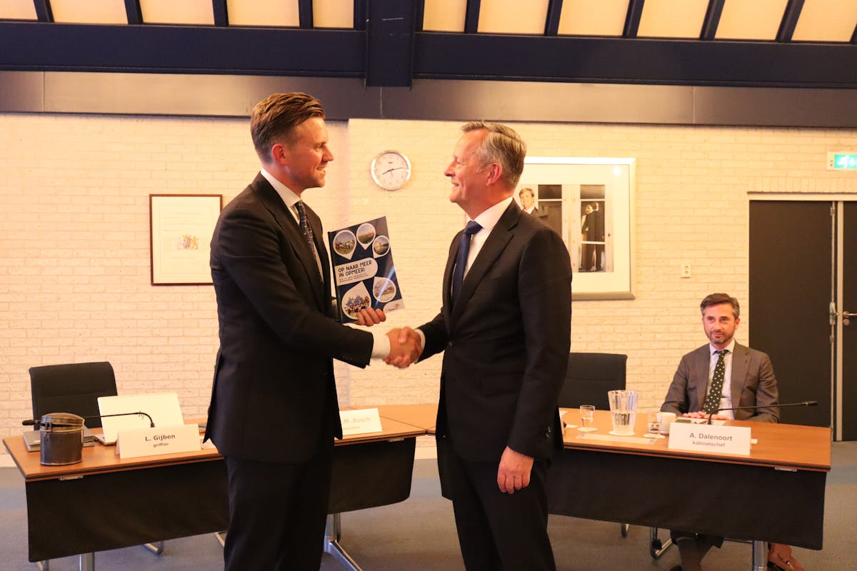 ‘Energiek, benaderbaar en gedreven – empathisch, gezaghebbend en besluitvaardig’, dat zijn een aantal van de kernwaarden en vaardigheden die de gemeenteraad zoekt in de toekomstige burgemeester van Opmeer. Donderdagavond 22 mei heeft de gemeenteraad de definitieve profielschets vastgesteld, waarin deze en ook andere belangrijke rollen en taken zijn beschreven. De heer Beemster, voorzitter van de vertrouwenscommissie, heeft de profielschets na vaststelling officieel aan de commissaris van de Koning Arthur van Dijk overhandigd.
