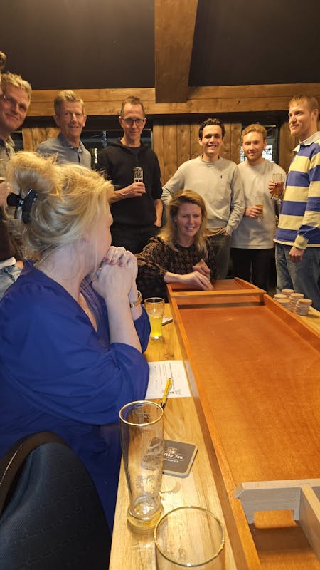 Over de sjoelbakken niet dan lof. Chef Sjoelbak Frank Dekker had zijn uiterste best gedaan de bakken op topkwaliteit te prepareren. Voordeel was natuurlijk voor hem de perfecte nieuwe sjoelarena van Vroeg of Laat. Waar voorgaande jaren bierviltjes onder de bakken nodig waren om deze waterpas te krijgen, konden de bakken dit jaar zonder problemen worden neergelegd.