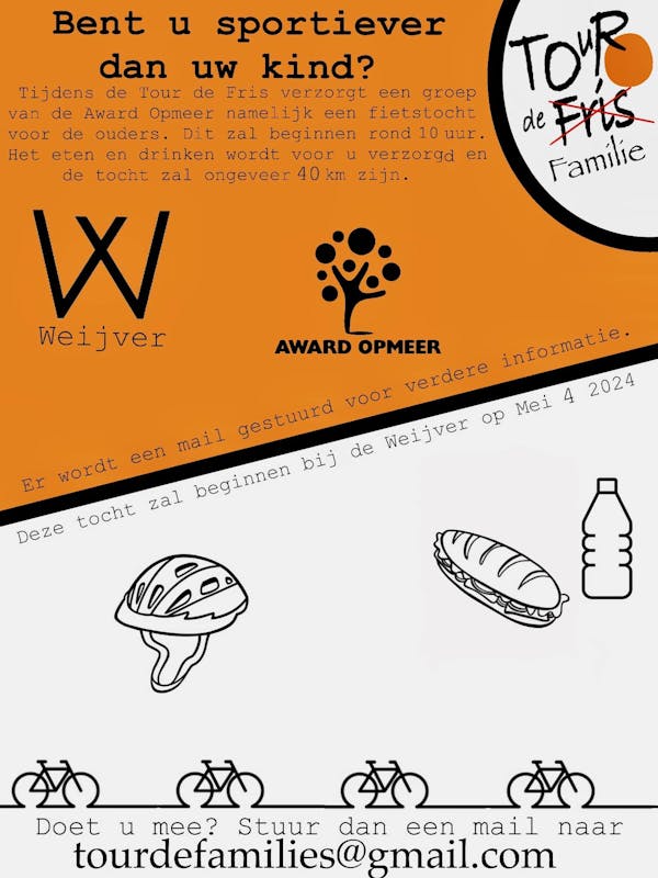 Vanuit de Award willen Gijs, Wesley en Tour de Fris deelnemers Koen, Mees, Taco, en Siem een fietstocht organiseren.