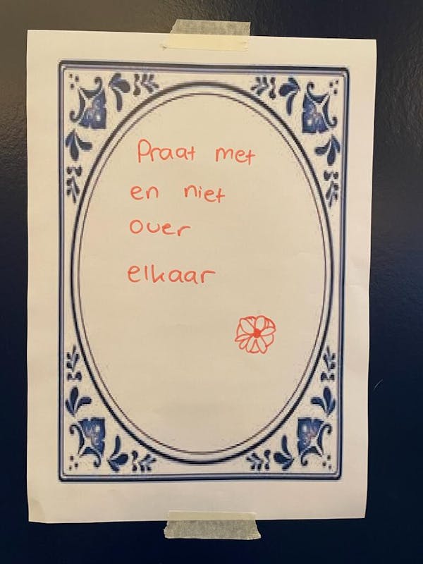 - Praat MET en niet over elkaar
