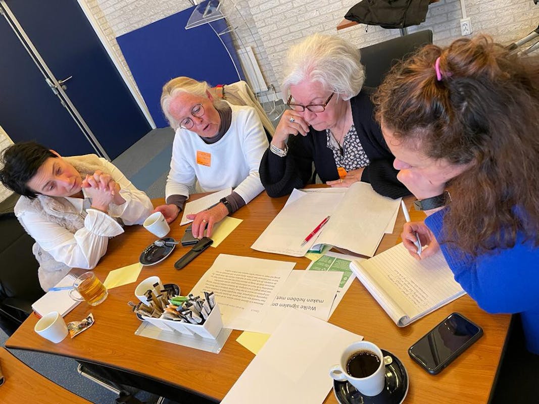 In kleine groepjes is er nog gesproken over signalen, wat een ieder zou doen, en welke samenwerking met andere organisaties we aan kunnen gaan. Deze nieuwe inzichten zijn opgeschreven op een tegeltje. Die we graag ook willen delen: