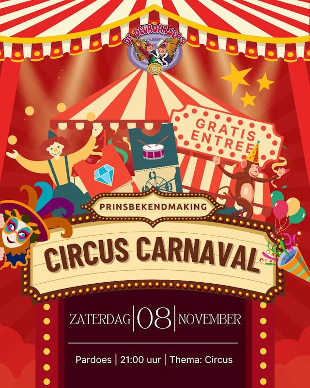 Op zaterdag 8 november om 21:00 uur gaan de spotlights aan in Pardoes en openen De Deurdarsers de piste voor een nieuw carnavalsjaar! Prins Buis, Prinses AnnaRoos en Adjudant Victor hebben een jaar lang de show gestolen, maar geven nu de piste vrij voor een gloednieuw Prinselijk gezelschap. Wie dat zijn? Dat blijft nog even een goed bewaard circusgeheim.