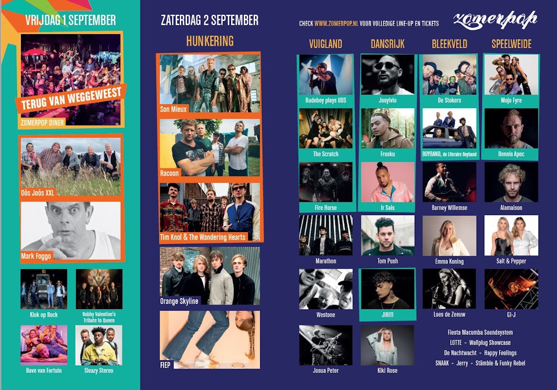 De Zomerpop Flyer 2023 is uit en huis-aan-huis verspreid in gemeente Opmeer. Heb jij de Flyer niet gehad? Geen paniek en download deze hier; https://www.zomerpop.nl/.../Line-up/Flyer_Zomerpop_2023.pdf