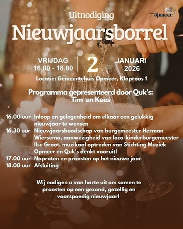 De gemeente Opmeer nodigt alle inwoners, organisaties en verenigingen uit om samen het nieuwe jaar te vieren!